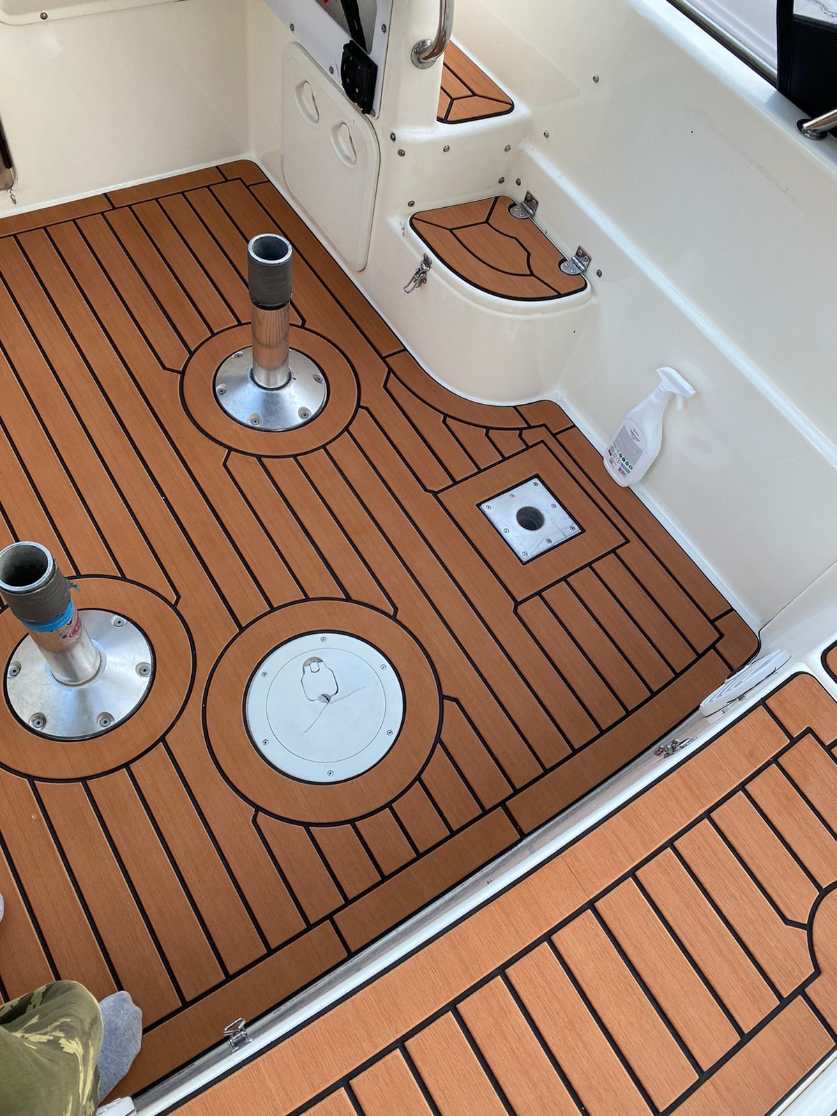 We look at your existing flooring, talk through how you use the boat, and help you pick the right material, marine carpet, woven vinyl, EVA foam, or synthetic teak. Each has its place depending on use, traffic, and conditions.