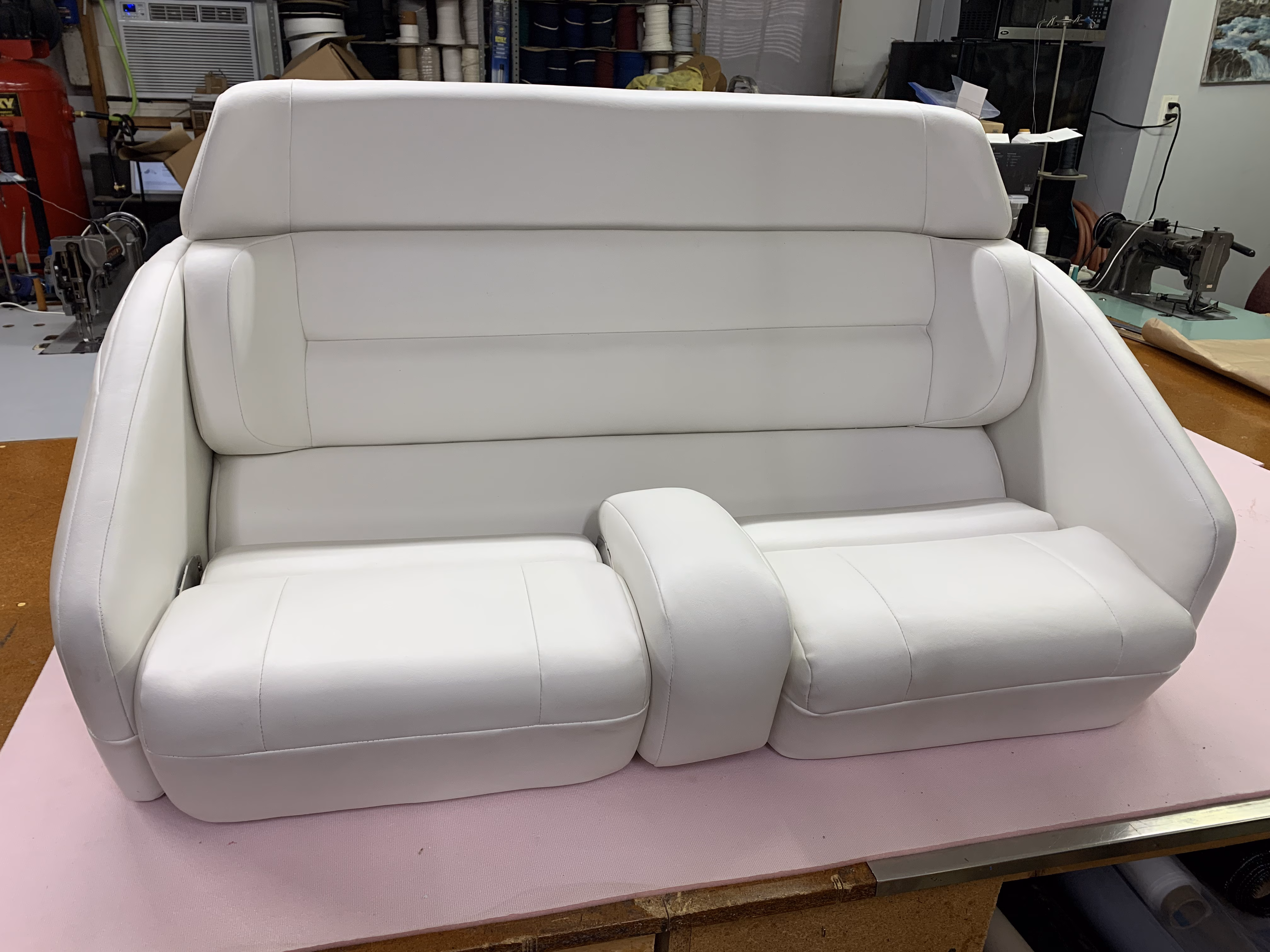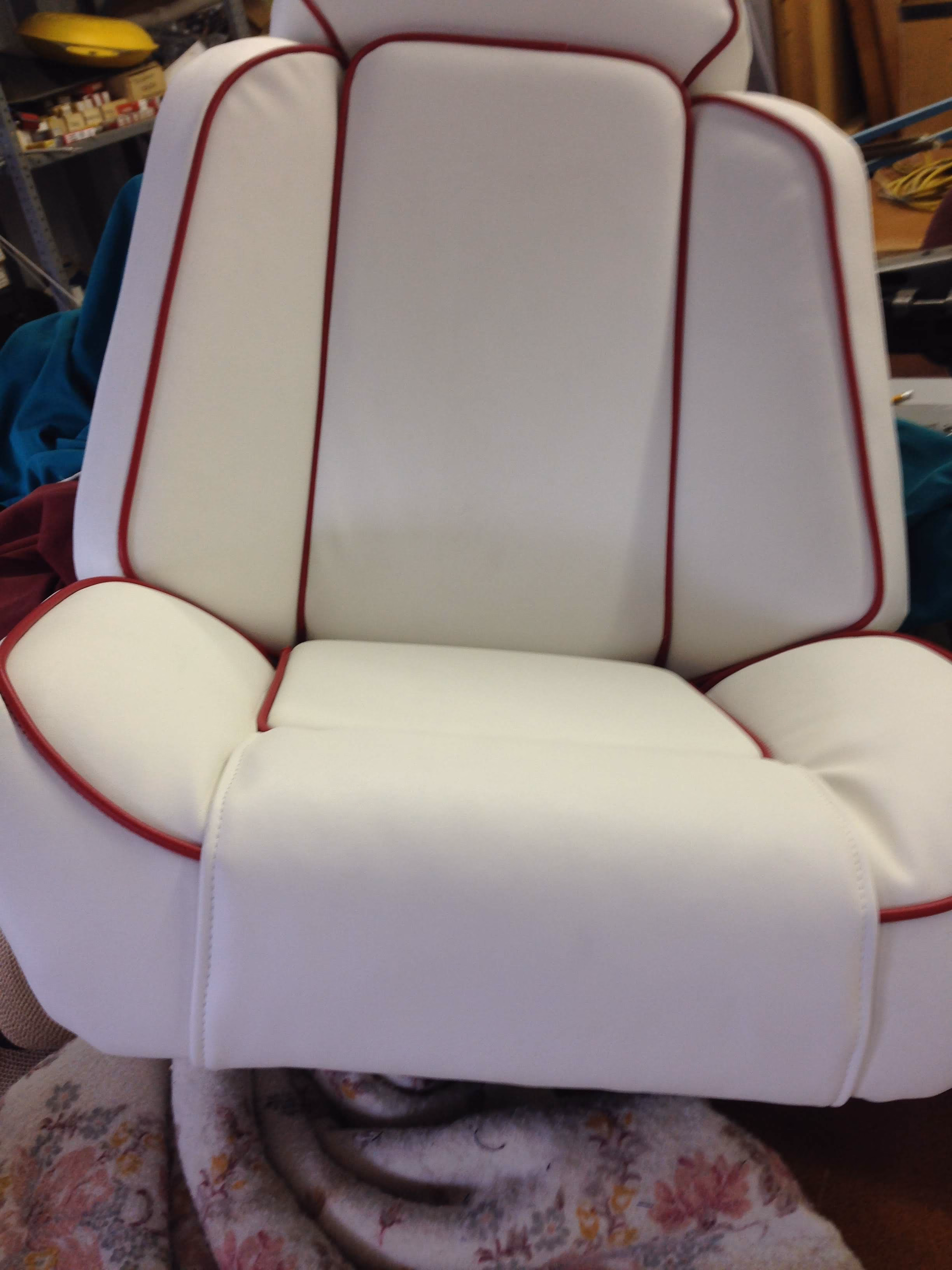 "Our helm seat completely collapsed. They rebuilt it with a brand new frame and foam cushion and recovered it in a vinyl that's held up. The whole boat looks brand new."